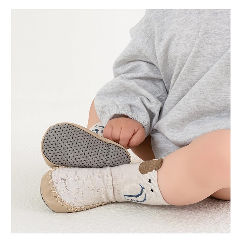 - 【Safe & Lightweight】 These toddler non slip socks adds leather anti collision shoes head to protect infant's toe from injury. These sock shoes are lightweight make your baby walk easily.