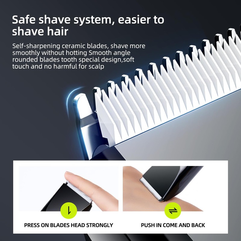 - SAFE and HEALTH: Working in low noise, haircut quietly without any noise and irritating. Easy operation, more safe and free shave at home. Built precise hairstyle only push sightly. Easily washing Clean and Health.