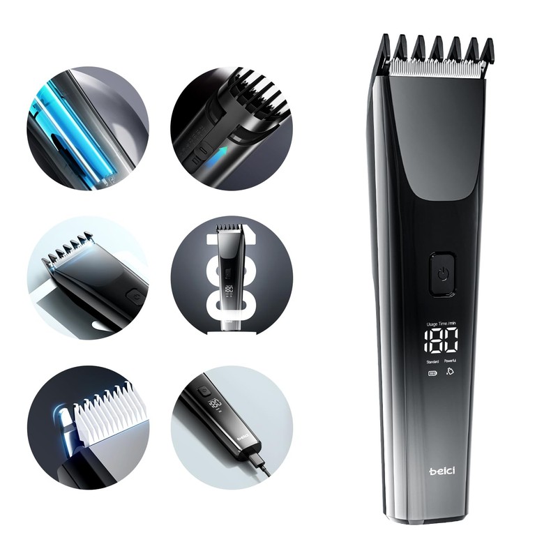 beici Hair Clipper Hair Trimmer for Men and Children Adjustable Haircut Length Professional Haircuts Tool Grooming 6 Kit LED Screen Display Fast Charge Black for Family