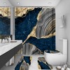 beifivcl 4Pcs Marble Shower Curtain Sets with 12 Hooks, Luxury Bathroom Decor Sets - Curtain, Toilet Lid Rug and Non-Slip U Shape Bath Mat Accessories Marble Print, 72 x 72 Inch, Navy Blue