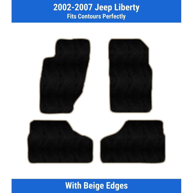 Beige Edge Custom Fit Front & Rear Carpet Floor Mats, Black, Compatible with Jeep Liberty 2007 2006 2005 2004 2003 2002