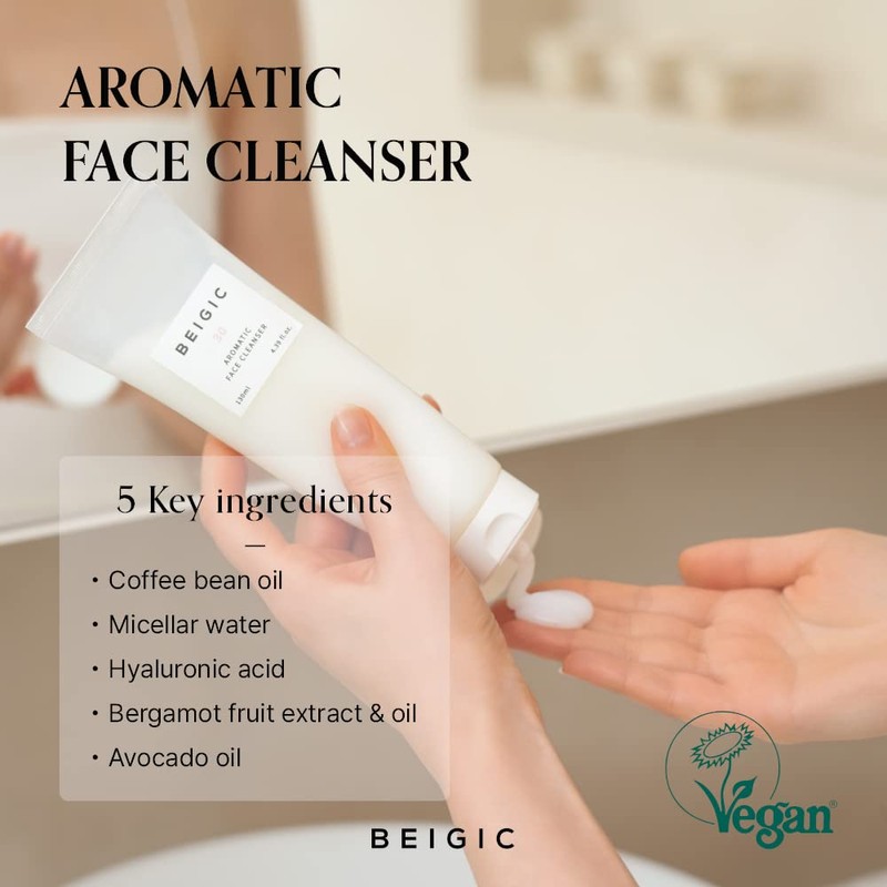 BEIGIC Aromatic Face Cleanser - Low pH Gentle Hydrating Face Cleanser with Hyaluronic Acid, Sulfate-Free, Vegan and Cruelty-Free (130ml / 4.39 fl.oz)