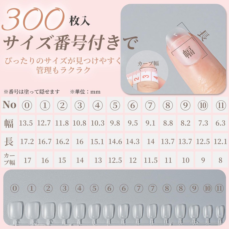 • 【大容量&マルチに使える】本製品は合計300枚入りの大容量セットで、繰り返しの練習や多彩なデザインに挑戦するのに十分な量を確保。透明タイプの付け爪は、長い爪を維持できない方の代替アイテムとして便利で、自分好みにデザインできるDIYネイルにも最適です。セルフネイルはもちろん、ネイルサロンのサンプル展示やスクールの練習用としても活躍。家でも外出先でも手軽に使え、コスパも優秀。