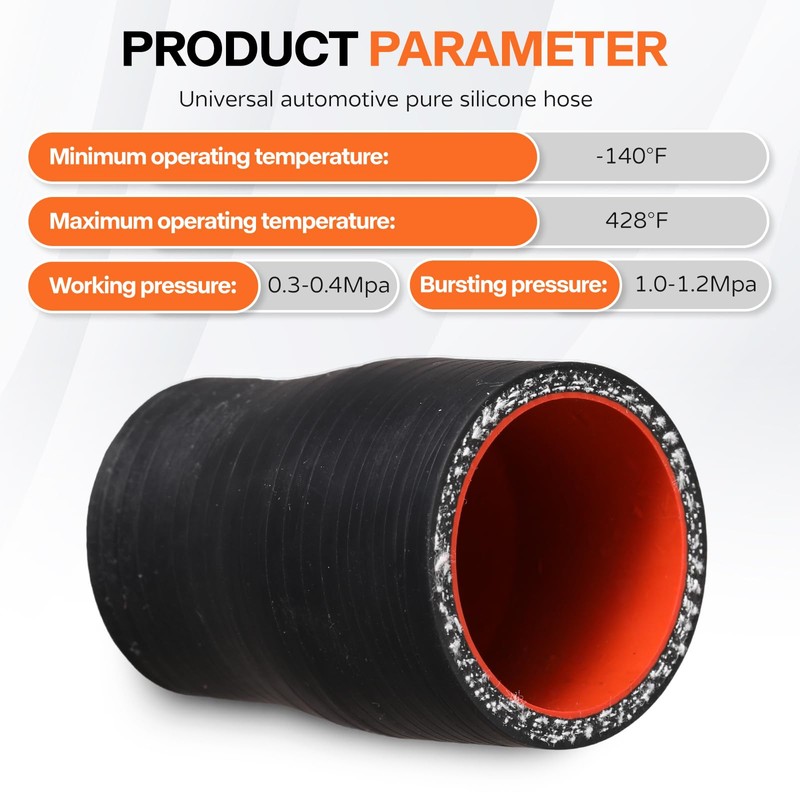 - Parameters: The silicone reducer coupler hose kit boasts a temperature range of -140F to 428F and a bursting pressure of 1.0-1.2MPa
