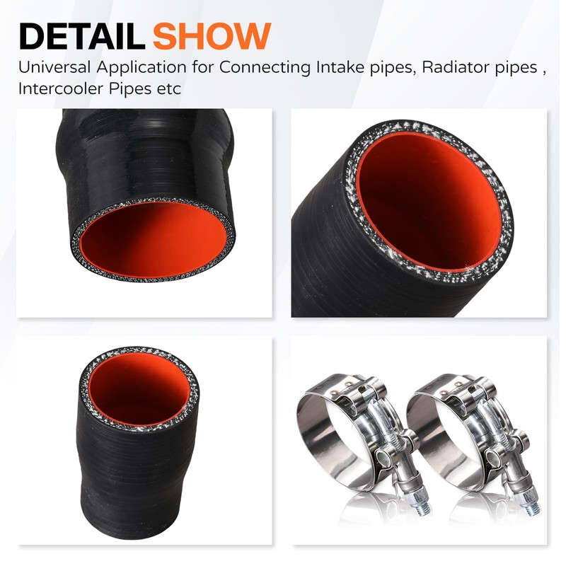 - Application: This silicone reducer coupler hose features universal compatibility, making it ideal for straight connections of intake pipes, radiator pipes, intercooler pipes, turbo piping, and more