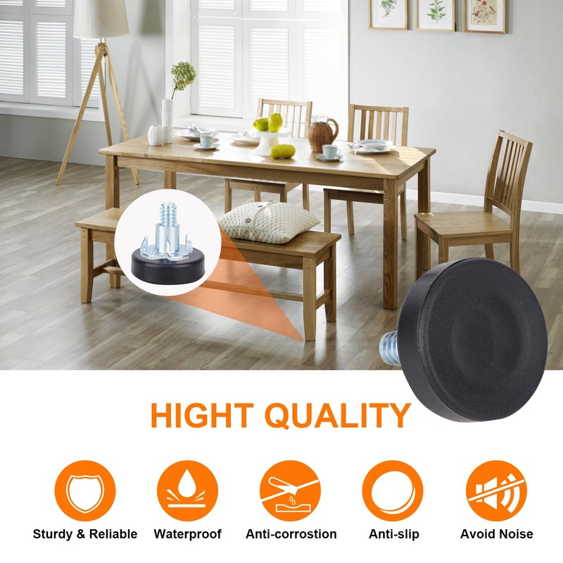 - 【Premium Material】The base of screw in chair feet is made of PP material, wear-resisting, non-slip, sturdy and durable, protect your sofa, cabinet from scratching, keep your furniture balanced and also provide good shock absorption.