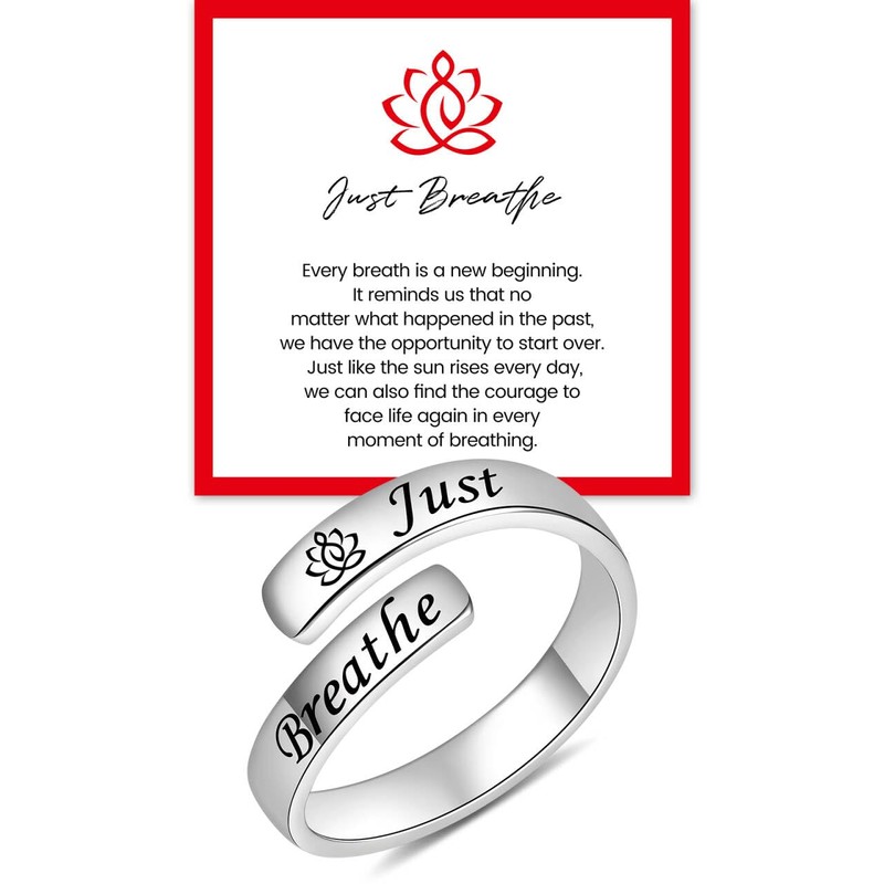 - In the world of yoga, breath is the bridge that connects the body and the mind. The Just Breathe ring constantly reminds us not to be swayed by distractions of the outside world, but to find inner peace by focusing on the breath