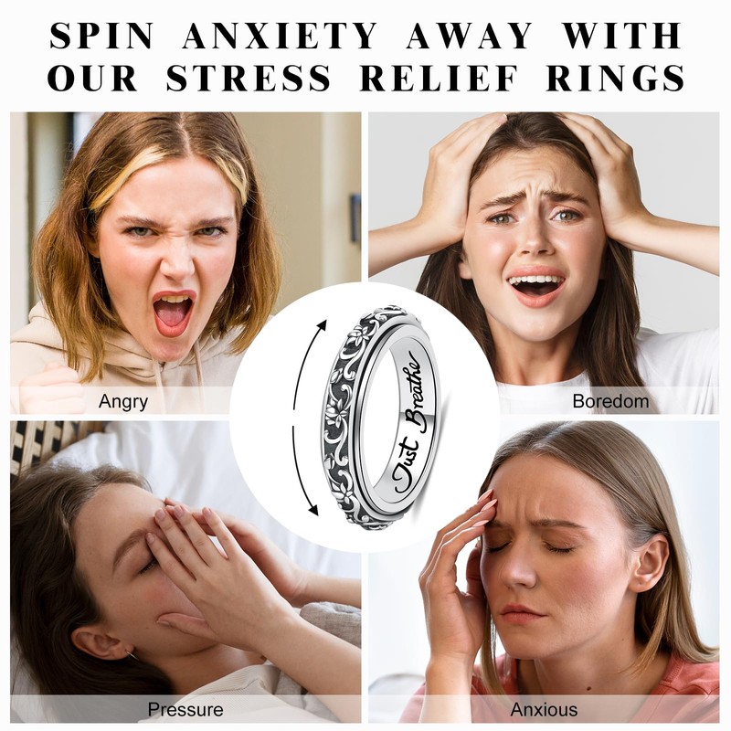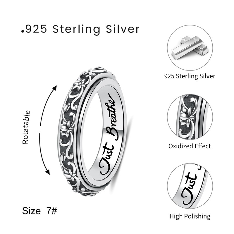 BEILIN Just Breathe Spinner Rings for Women 925 Sterling Silver Lotus Flower Inspirational Ring Encouragement Gift (7), Metal, No Gemstone
