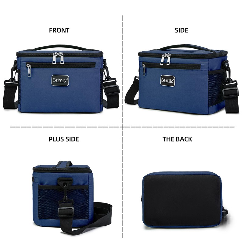 BEIMILY lunch bag is soft sided lunch box bag with an adjustable shoulder strap and handle, and a main bag with a capacity of 8 liters. A front zipper pocket can hold napkins, tableware, spoons, forks, knives, and other small items. The interior is made of aluminum foil, and the main bag is made of environmentally friendly PEVA material. The design of the aluminum foil layer can effectively keep warm or cold for several hours, and the inner layer is made of food-grade PEVA material, which is non-toxic, safe, and environmentally friendly. The lunch bag is suitable for various occasions such as work, picnic, beach, and travel.