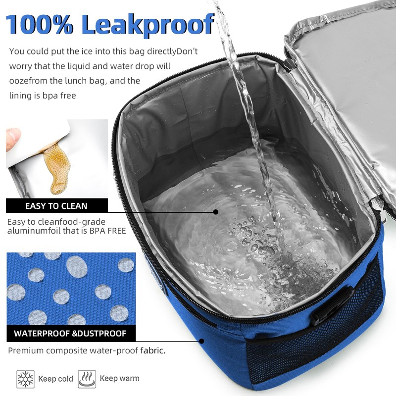 • Large capacity lunch bag:8L men's and women's insulation lunch bag, the size is 10.2 × 6.8 × 7 inches, which can accommodate 12 bottles of 335 ml. The soft cooler lunch bag provides you with spacious storage space. You can put in lunch, snacks, drinks, lunch boxes, food containers, condiments, fruit salads, etc. The front pockets are placed in a tableware, a napkin, a bottle, a wallet, a key and other necessities, and then placed the water bottle or energy drink in the side grid pocket.