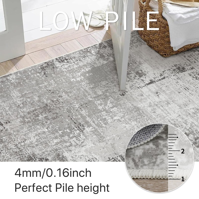 - Soft short pile rug: washable living room rug is made of high-quality, soft synthetic wool fabric materials and has been tested for harmful substances according to Standard 100 by Oeko-Tex, so it is safe for families with children and pets. The 4mm low carpet can be placed in entryways and under furniture without hindering opening or closing doors.