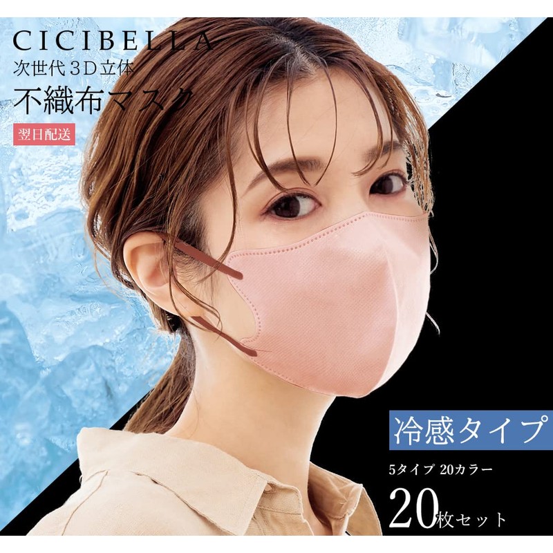 [Being] 【2022-06夏用冷感】 cicibella3Dマスク 夏用マスク 薄い 立体マスク 不織布 血色マスク バイカラー マスク 不織布マスク カラー 3D マスク 立体 くちばし マスク 使い捨て 小顔 チークマスク 耳が痛くならない 20枚 花粉 PM2.5 飛沫防止 3層構造 (ベビーピンク)