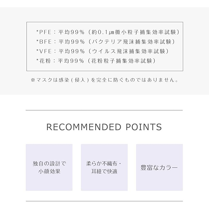 • 【花粉・ウイルス飛沫等99%カット】極細繊維素材で微小粒子をカットメルトブローン不織布を使用、3層フィルターで構成され、花粉・ホコリ・PM2.5、ウイルス飛沫を99%カットします。(※マスクは感染を完全に防ぐものではありません)