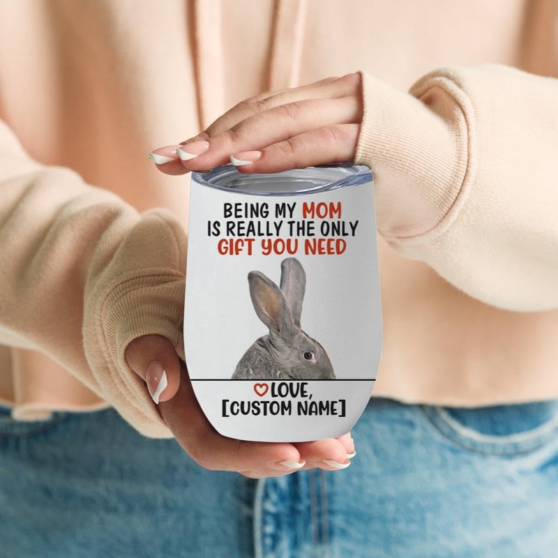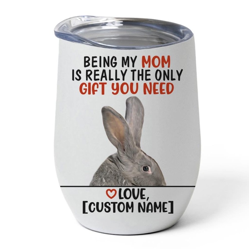 Being Grey Flemish Giant Rabbit Mom Is Really The Only Gift You Need Funny Personalized Name Wine Tumbler 12oz - Gifts for Rabbit Lovers