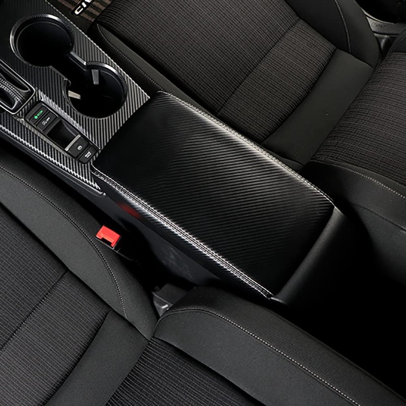 Being Up Car Center Console Cover Fit for Honda Civic 2022 Sedan Hatchback Waterproof Anti-Scratch Leather Armrest Box Pad Protector,Black Carbon Fiber Pattern