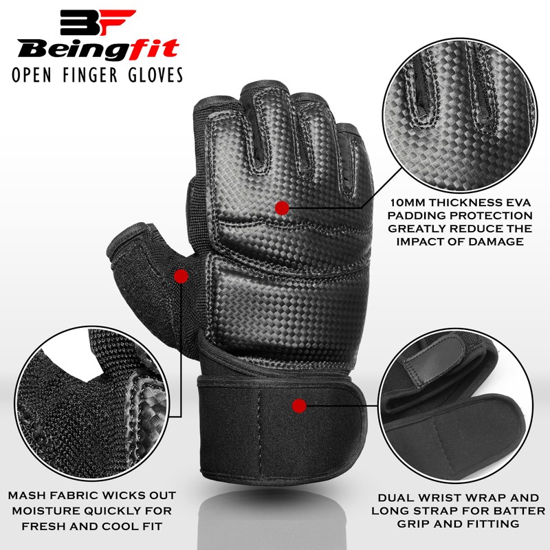 Beingfit Open Finger Gloves Boxing Gloves (MEDIUM, BLACK)