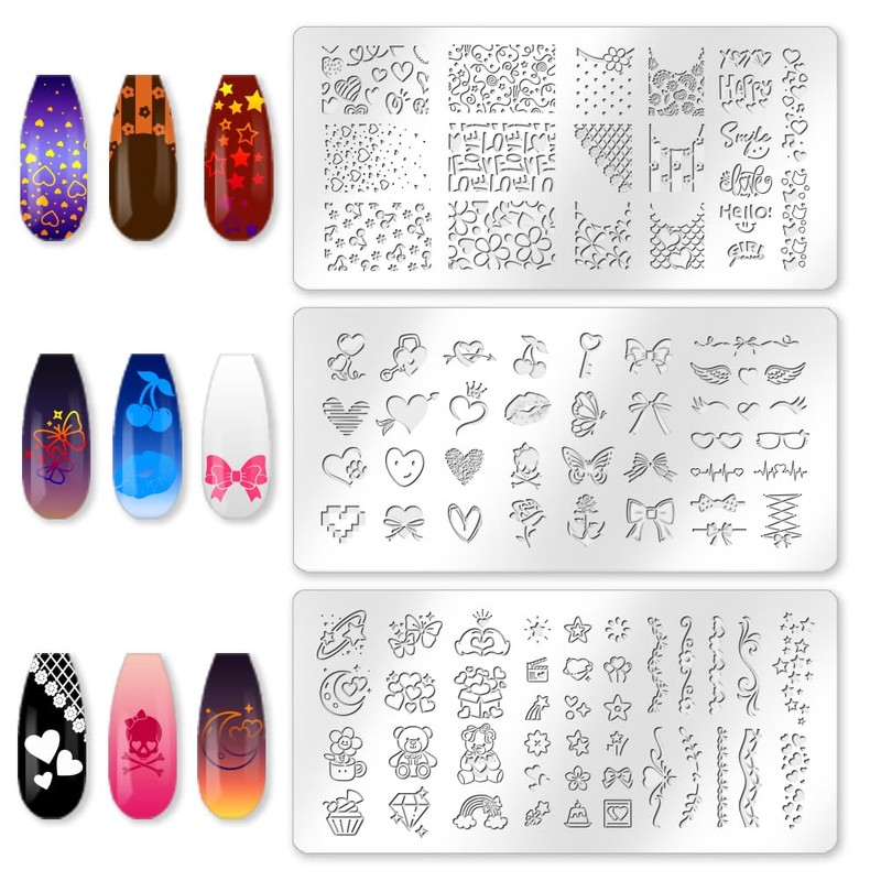 - Package Information: A total of 3 templates, 1 nail stamp and scraper, heart, bowknot, love, rose, flower, lip patterns, randomly collocation, leading the nail fashion, the world at your fingertips jump