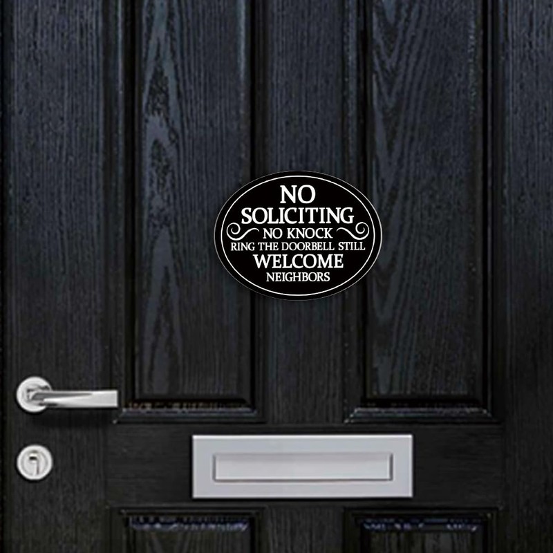 - Exquisitely Designed: Our no soliciting sign has a clear message, written in bold and large white letters on a black background, "No Soliciting" This is a wooden sign that prohibits knocking on doors or ringing bells, which helps prevent you from being disturbed