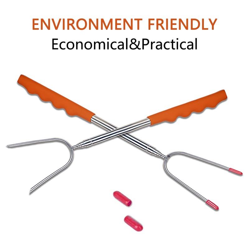 - SUPERIOR MATERIAL: The fork tip is made of premium quality 304 stainless steel which to ensure no rusting & safe roasting. And the telescopic pole is made of strong stainless material which could hold the food steadily. The comfortable PVC handle with finger indents protects your hands by giving a firm, steady grip. And it also does well in heat insulation.