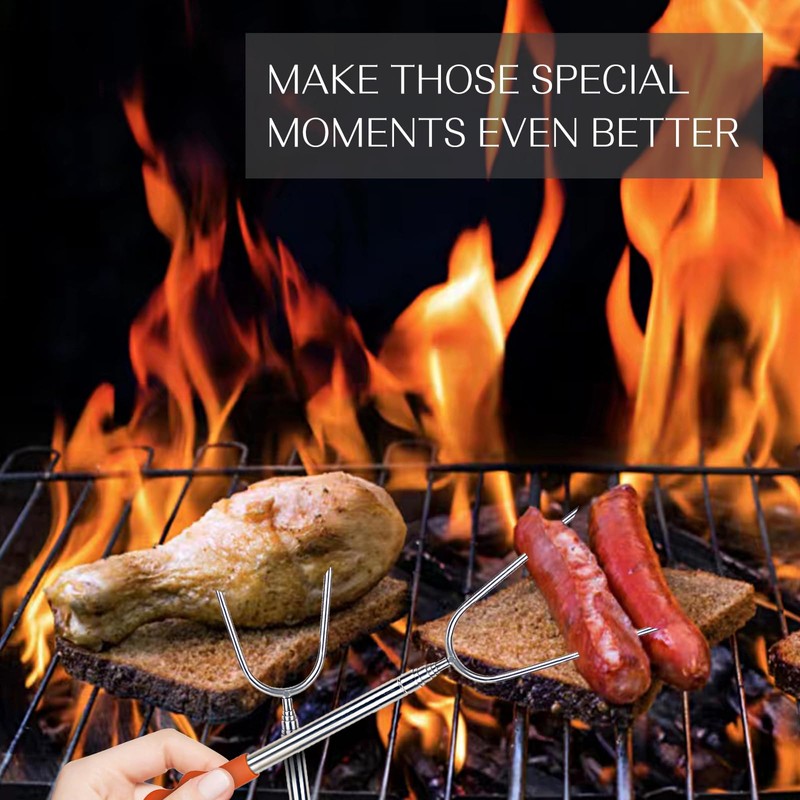 - WIDE APPLICATION: Our telescoping hot dog roasting sticks for campfire accessories outside camping, you can use them for roasting marshmallows, sausage, hot dogs, onion, wieners, steaks, meat, chicken wings, vegetables etc. Marshmallow roasting sticks for fire pit long satisfy you patio firepits, backyard fire pit, bonfire pit, or campfire, outdoors, picnic and camp needs.
