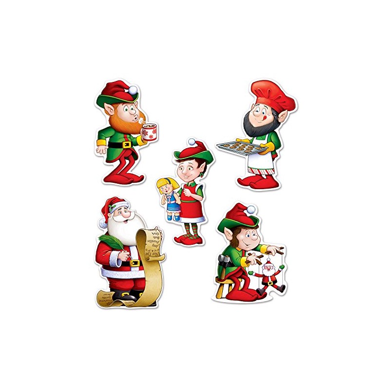 Beistle 22222 Mini Santa and Elves Cutouts, 5.5", 10 Cutouts In Package