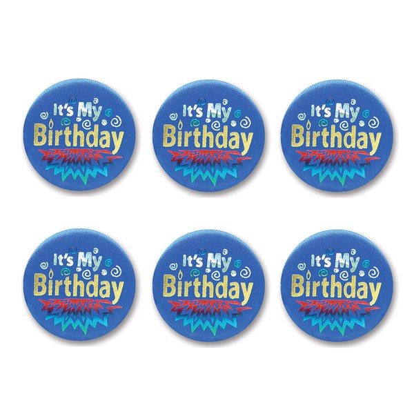 Beistle 6-Pack It's My Birthday Satin Button, 2-Inch, Blue