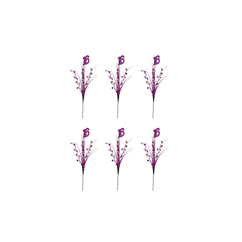 Beistle 6 Piece Glittered "16" Metallic Star Sprays, 23", Cerise
