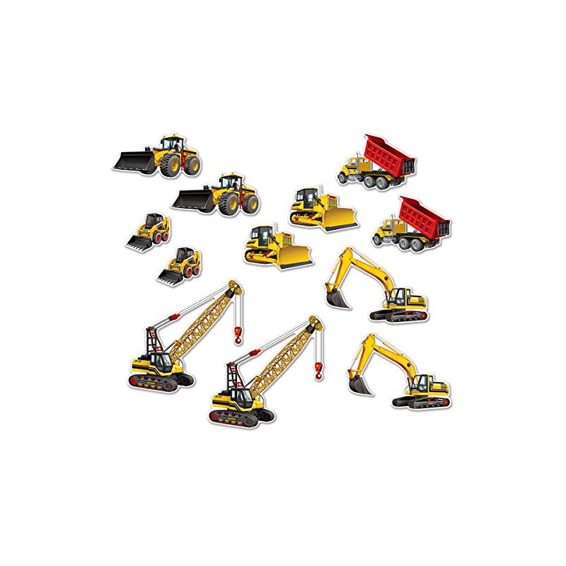 Beistle Construction Equipment Cutouts, 8"-20½", Yellow, Black and Red