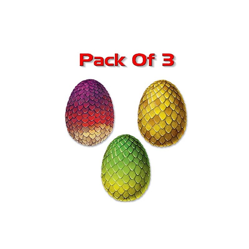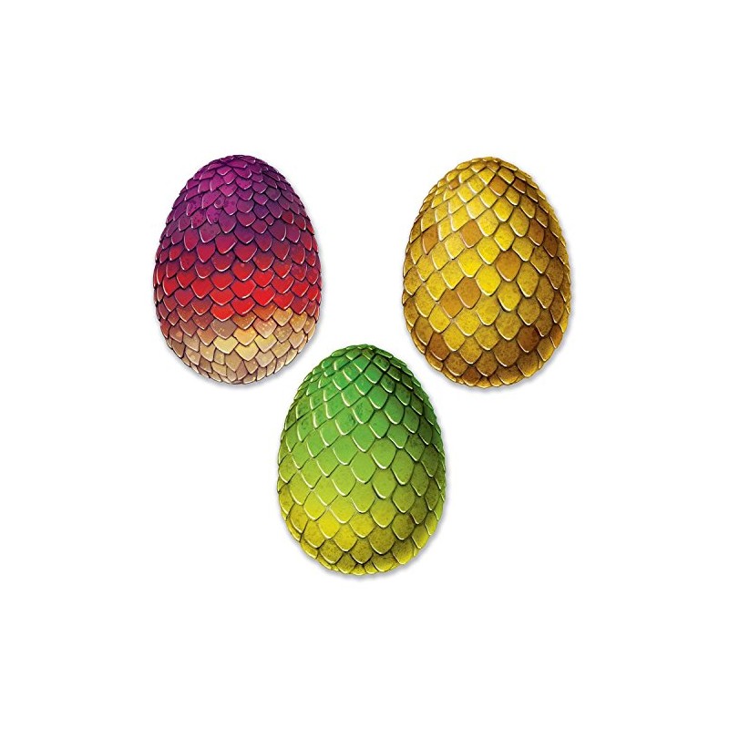 Having a fantasy theme party or a birthday party for someone who loves Dragons? The Dragon egg cutouts are a great inexpensive party supply that will add a splash of color to your party. Place them around the room and their bright colors and intricate details will stand out! Made of cardstock and printed two sides. Measure 17 inches tall and 12 ½ inches wide. Contains three (3) per package.
