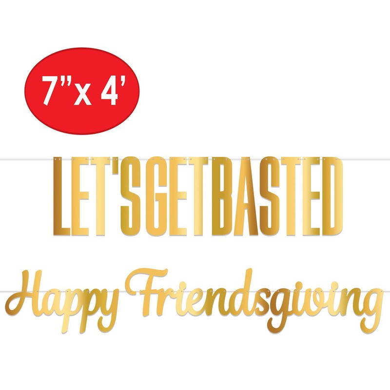 - Includes 2 "Happy Friendsgiving" Banners and 2 "Let's Get Basted" Banners in the package