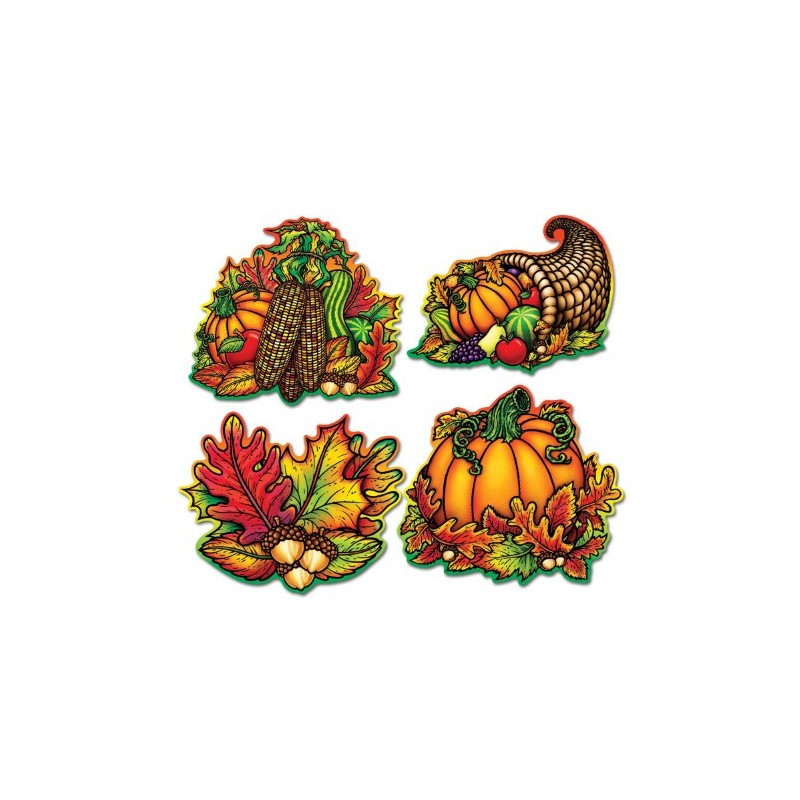 Beistle 99111 Packaged Autumn Splendor Cutouts (4 Count). The package contains 4 Fall cutouts in assorted shapes and designs that measure 16 Inch. They are made of board stock, printed on both sides and are wonderful Fall colors.