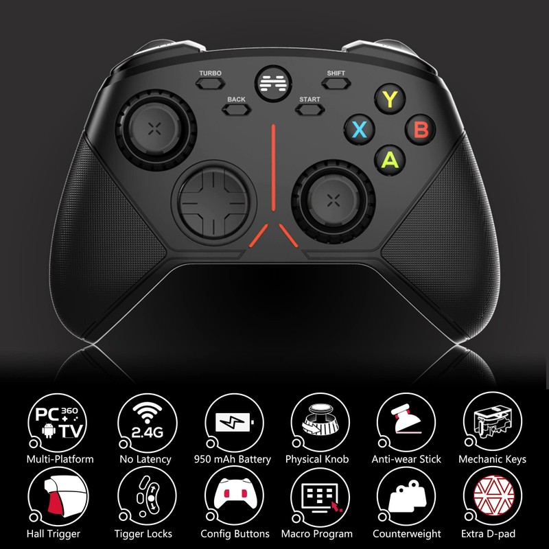 BEITONG Asura 3S PC Game Controller 2.4Ghz Wireless Gamepad For Steam Deck Windows 7 8 10 11,Anti-wear Joystick Sensitivity Adjust Instant/Mechanic Keys/Trigger Locks/950 mAh/Modulary Black