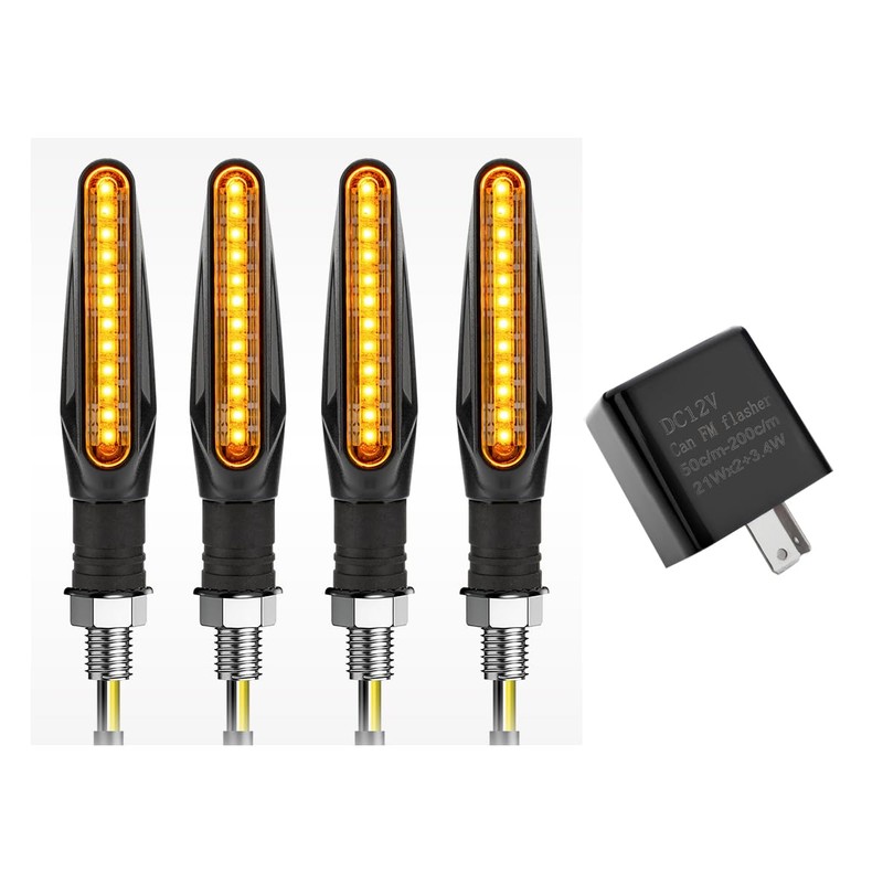 Beiwoer Turn Signal, Bike, Set of 4, LED Turn Signal, Flowing Turn Signal, 12 V, Sequential Turn Signal, Bike, Amber Flowing Light, Left and Right Set, Motorcycle, Turn Signal, LED, Universal, High