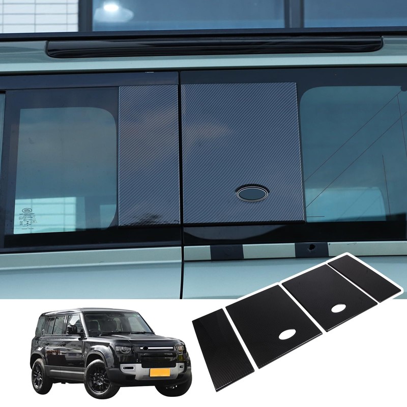 Bekantogy Door Window C Pillar Post Panel Cover Trim Compatible with LR Defender 110 130 2020-2024 Car Rear Door Side Window Glass Protective Panel Cover ABS 4PCS/Set (Carbon Fiber Pattern)