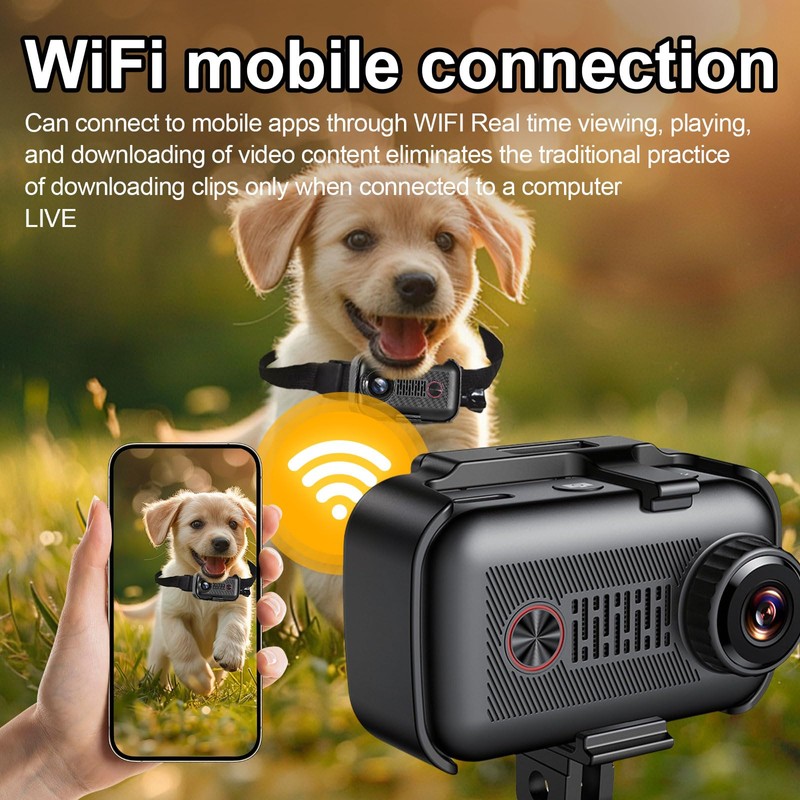 - 【WIFI Dog Collar Camera With Phone App】WIFI connected mobile phone to watch the real-time picture around the pet. The 2k cat collar camera comes with a WIFI hotspot, and the mobile phone connects to the camera through the APP to view the real-time picture. You can also use a USB cable to connect the cat camera to your computer to view photos and videos, adjust settings or update timestamps