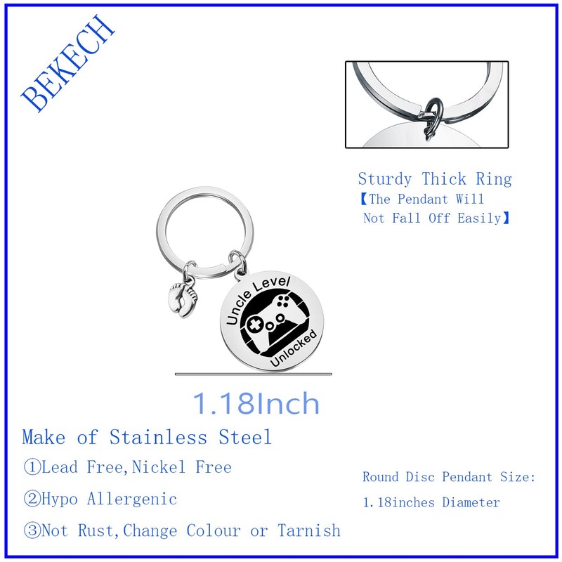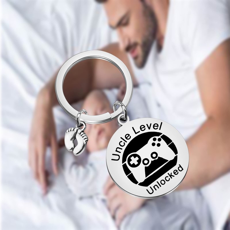 • ❤New Uncle keychain for men❤This keychain is specially made for new uncle and it engraved words-Uncle Level Unlocked with Baby Footprint.This is the best wish for a new uncle.