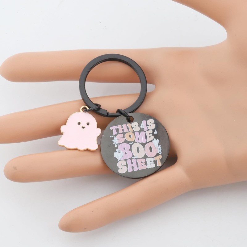 - ❤This keychain is engraved with the words "THIS IS SOME BOO SHEET" and also comes with a ghost.