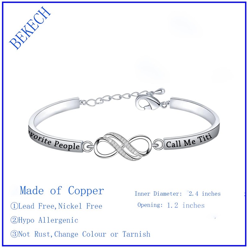 BEKECH Titi Aunt Gift My Favorite People Call Me Titi Infinity Bracelet Mother’s Day Jewelry from Niece Nephew Spanish Auntie (Titi SILVER)