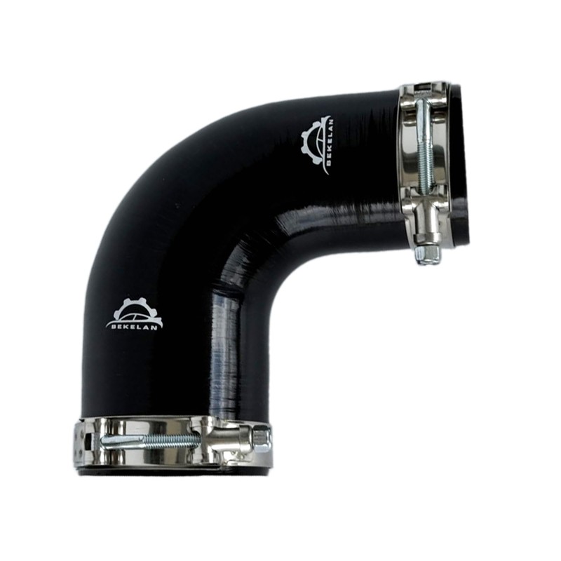 Bekelan 90 Degree 2.5" to 3"(63-76mm) Elbow Coupler Silicone Reducer Hoses are constructed from 4-Ply Reinforced High Temperature Silicone for heavy duty applications,they can be used for all of your tubing coupler needs.100% Brand New,never been used.Type: Reducer Elbow Coupler Silicone Hose .Color: Black and Red.Made of high quality silicone material.Inner diameter: 2.5" to 3"(63-76mm)Length: 5' or 127mm.Thickness of wall: 5 mm, 4-ply reinforced.Working Pressure: 0.3Mpa (43.5 PSI) to 1Mpa (150 PSI).Bursting Pressure: 2Mpa(290 PSI).Working Temperature: -76F (-60C ) to +500F (+260C).Fitments: Universal, such as Custom Turbo, Supercharger charge piping set up, inlet for turbocharged and supercharged cars, vehicles,Industrial Hydraulic etc.Please note that silicone hose is not suitable for fuel or oil transfer.Package Including:1 X Silicone Hose+2 X Stainless Steel T-Bolt Clamps.
