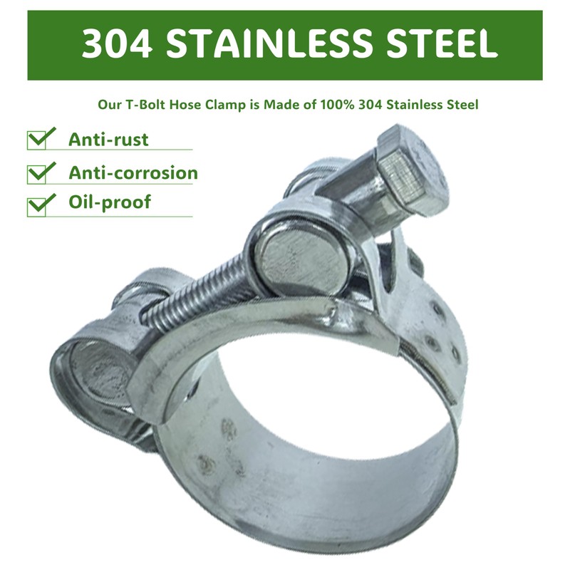 - 【Size & Content】Pack of 2 pcs. T bolt clamp adjustable Work Range: 2.04-2.16"(52mm to 55mm); Width: 0.86"(22mm); Thickness 0.8mm(0.031"); the screw bolt M6*59mm. Please measure the outside diameter of the hose before making a purchase.