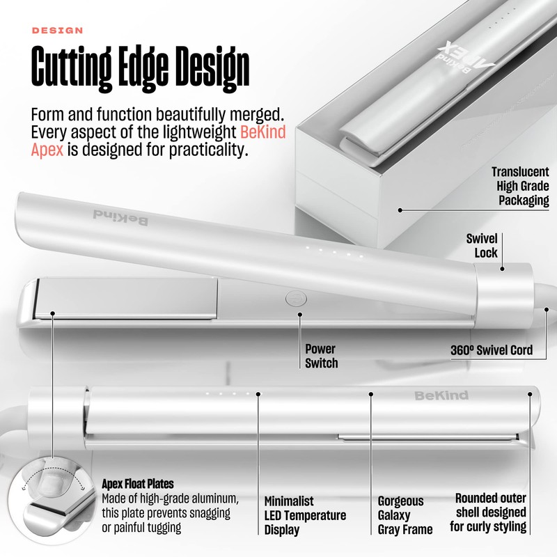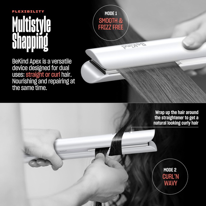 Bekind Plancha Alisadora de Cabello 2 En 1 Apex | Alisador Y Rizador de 1“ 450°F para Todos Los Peinados | Tecnología Ultrasuave | Memoria de Temperatura Y Calentamiento Rápido 15S | Set de Regalo 30