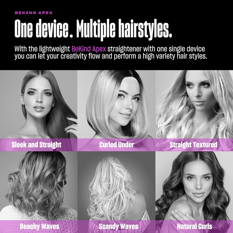 - Memoria de temperatura: para cada próximo uso, la función de memoria de temperatura permite el calentamiento automático hasta la temperatura exacta a la que utilizaste el BeKind Apex última vez, ahorrando más tiempo para hacer el peinado deseado