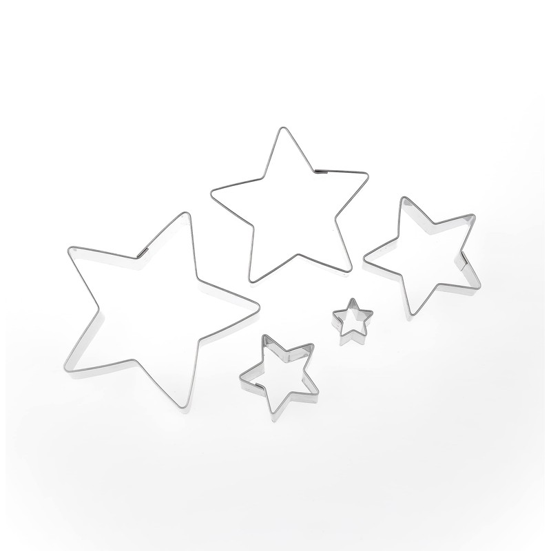 BekkiB 7767-Set of 5 Stars Cookie Cutters in the Shape of 5 Different Size Stars Stainless Steel