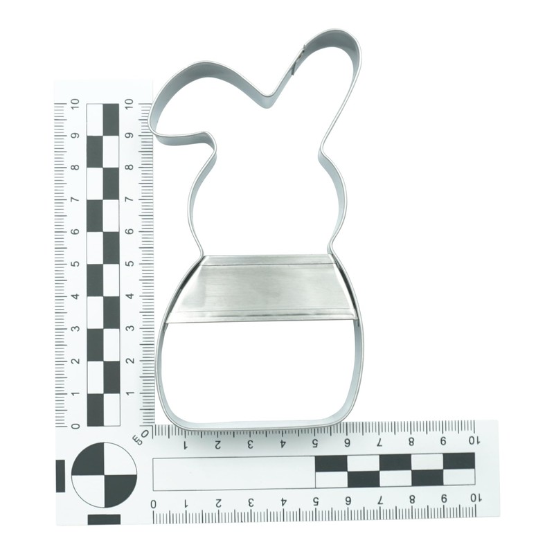 - Dimensions: standing large rabbit with legs approx. 8.3 x 11.5 cm - Sitting Easter bunny approx. 9.5 x 8.5 cm. Standing bunny without legs approx. 6 x 11.5 cm. Edge height: approx. 2 cm