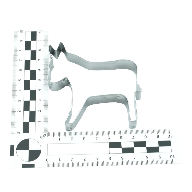 - Set of 4 cookie cutters: cow approx. 8 cm long, up to 5.7 cm wide - sheep approx. 7.5 cm long, up to 5.9 cm wide - Donkey approx. 8 cm long, up to 7.8 cm wide - Camel approx. 6.5 cm long, up to 5.5 cm wide