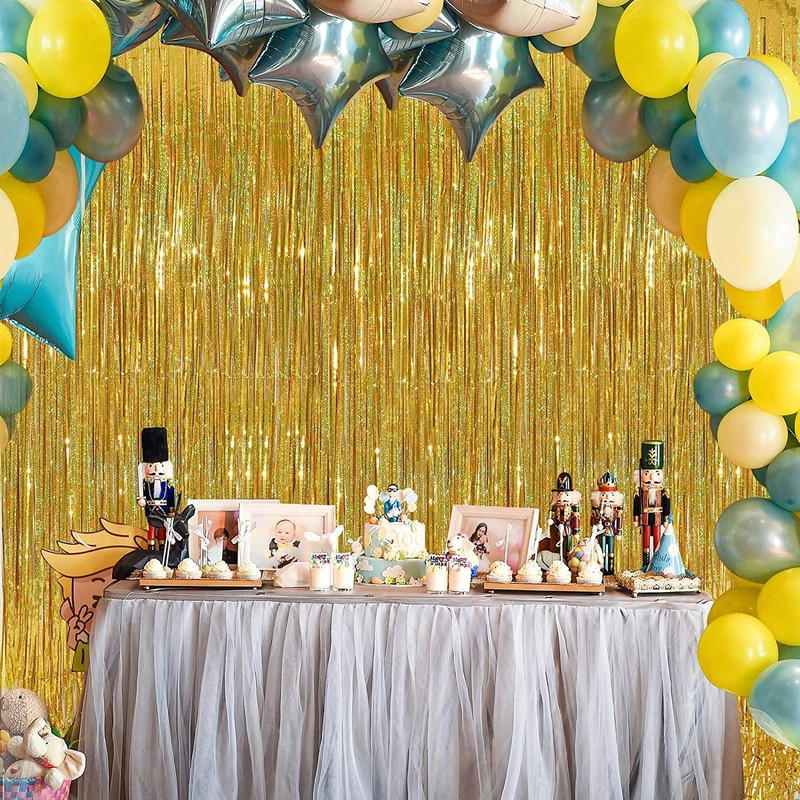 - Good quality: the latest laser gloss foil curtains are laser models that have a brighter colour than other metal foils and a more festive atmosphere. High-quality foil fringe tinsel curtain glitter decoration, can be used for a long time, durable and cuttable, you can make it short to decorate your table or wall. Everyone will like it, your guests will be amazed and you will be overhappy to celebrate the best party ever