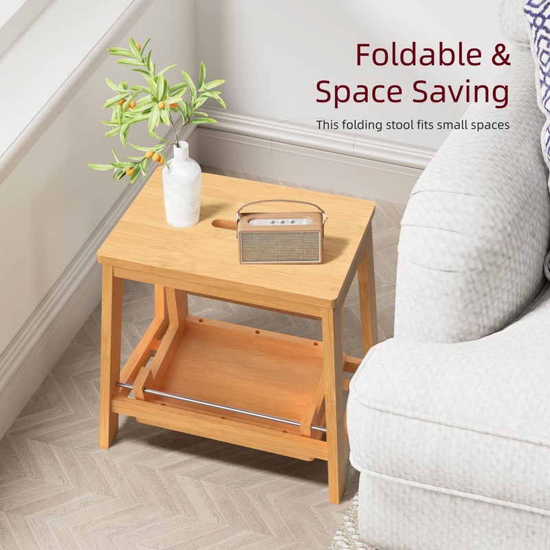 BEKVEM Bamboo Folding Step Stool with Sturdy Structure and Wide Stepping Surface for Safety, Multi-Purpose Foldable Step Ladder for Bathroom,Bedroom,Kitchen Step Stools for Kids & Adults, 400 lbs