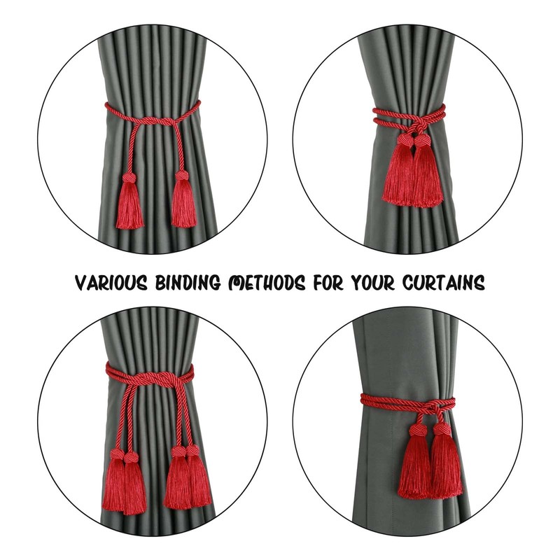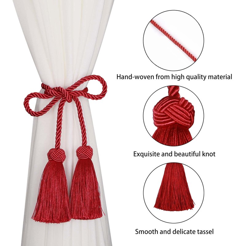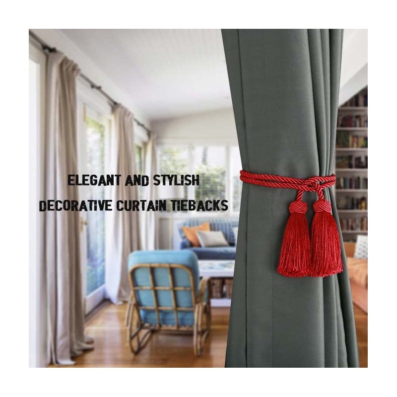 BEL AVENIR 2 Pack Curtain Handmade Tiebacks Decorative Curtain Holdbacks with Tassel (Red, 2 Pack)
