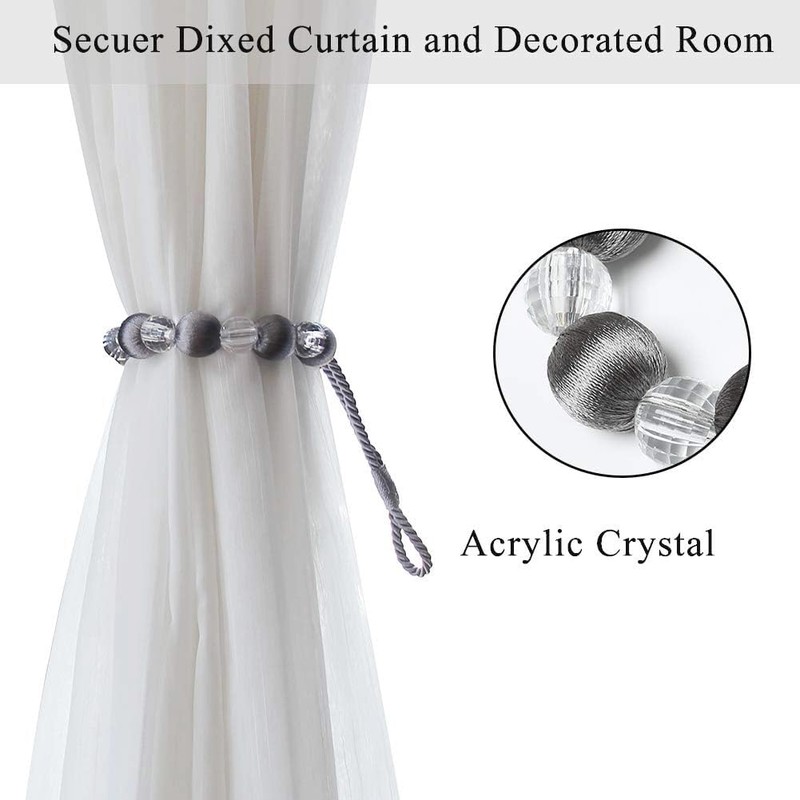 - Perfect Design: Total length of the curtain rope tiebacks is approximate 29.5 inches, Acrylic crystal bead diameter: 0.8". Rayon bead diameter: 1", Long enough to fit curtains of all thicknesses.
