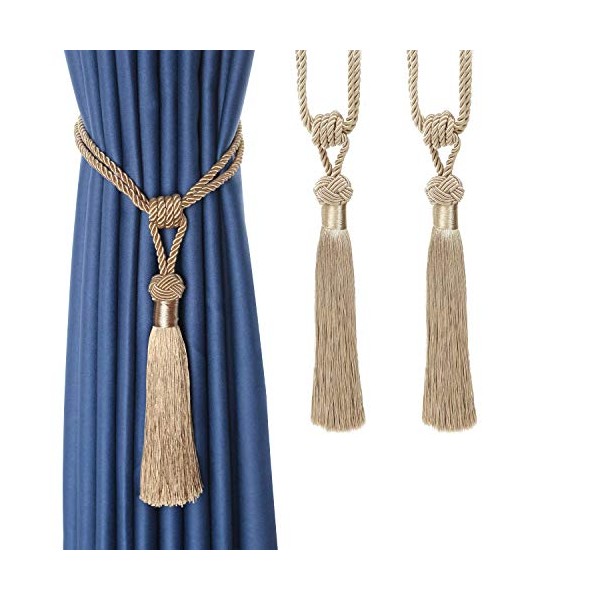 BEL AVENIR Curtain Tiebacks Hand-Woven Holdbacks Home Decorative Tassels Tiebacks (Beige, 2 Pack)
